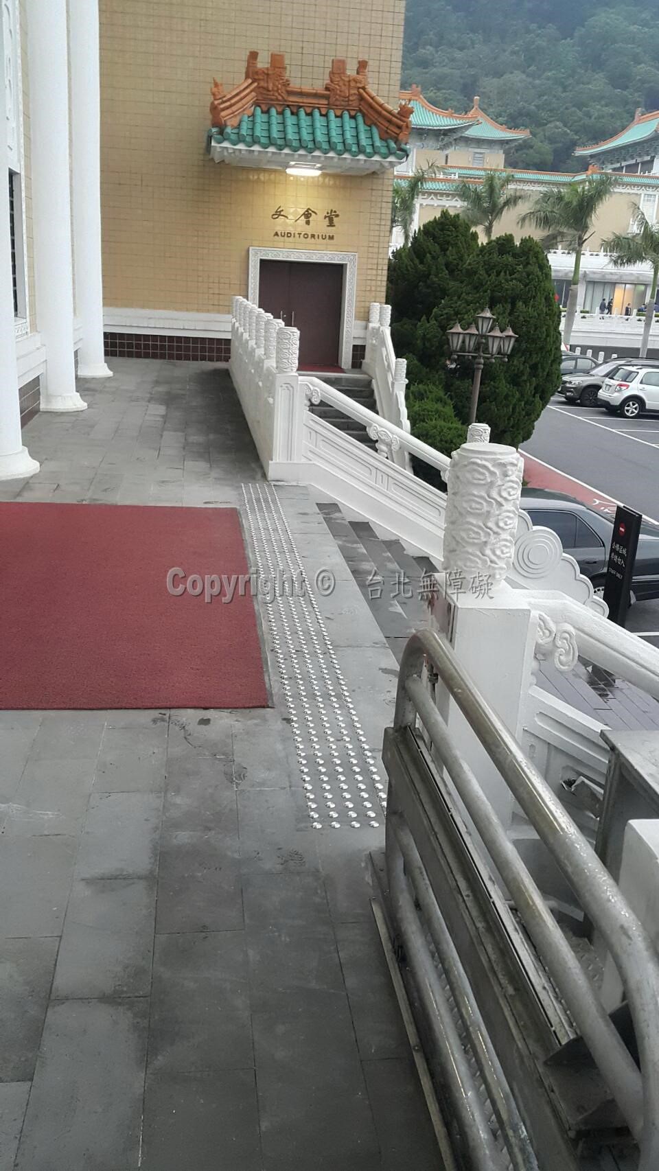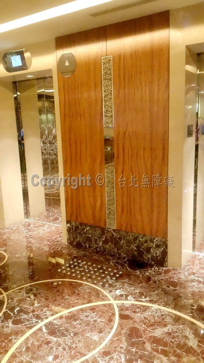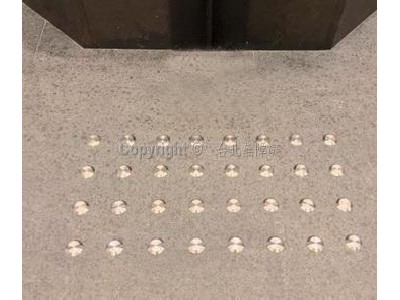 已不再用傳統黃色的導盲磚或金鋼砂止滑帶。已改用316不銹鋼材質圓點的導盲定位,達到整潔易清洗、美觀之需求。