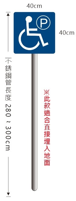 品名: 無障礙停車立柱牌(不銹鋼管埋入地面)