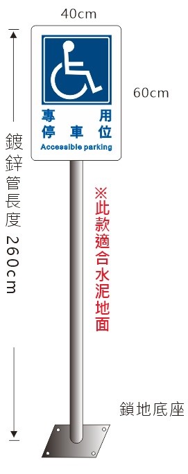 無障礙停車立柱牌(鍍鋅管鎖地面)
