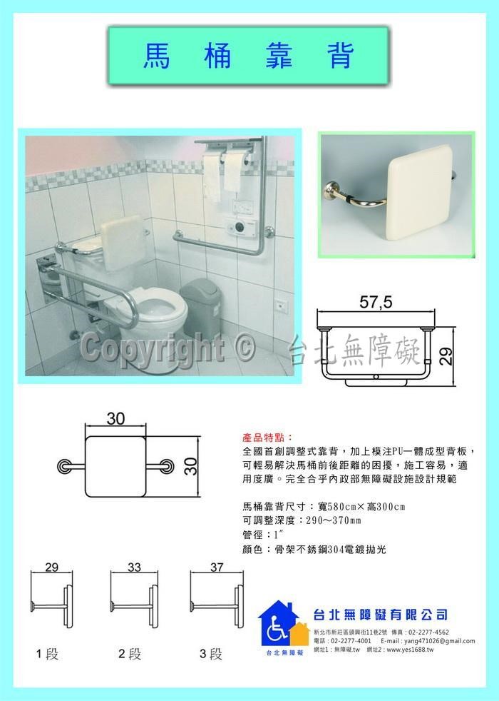 全國首創調整式靠背,加上模注PU一體成型舒適的背板,可輕易解決馬桶前後距離的困擾,施工容易,適用度廣。完全合乎內政部無障礙設施設計規範。